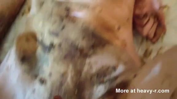 Sie hat sich ordentlich voll geschissen und verschmirt es an sich selber bis er mit seinem braunen schwanz kommt. Sie beginnt zu blasen und bekommt es anal