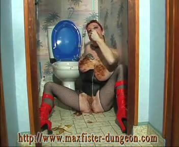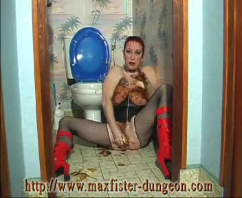German slut in stockings smearing shit