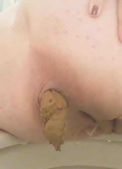 Close up of bbw babe that's pushing big turds over toilet. She wiped dirty ass with toilet paper.