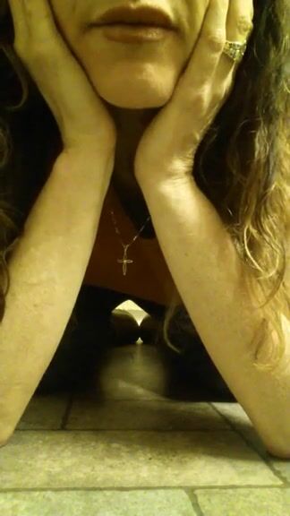 Curvy tanned busty milf pooping