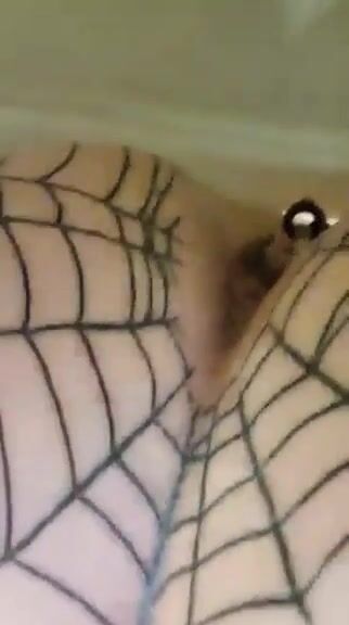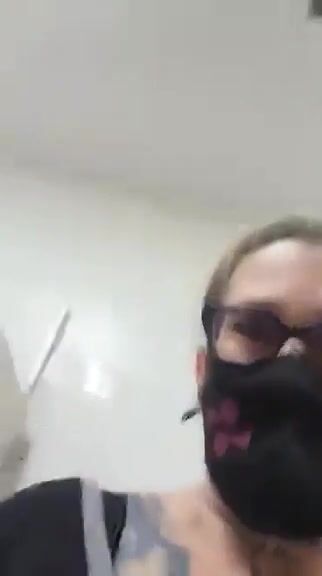 Girl in fishnet stockings squats and takes a huge shit in a public toilet