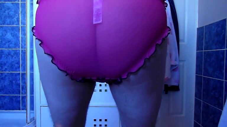 Girl in pink thong fills her crotch with piss