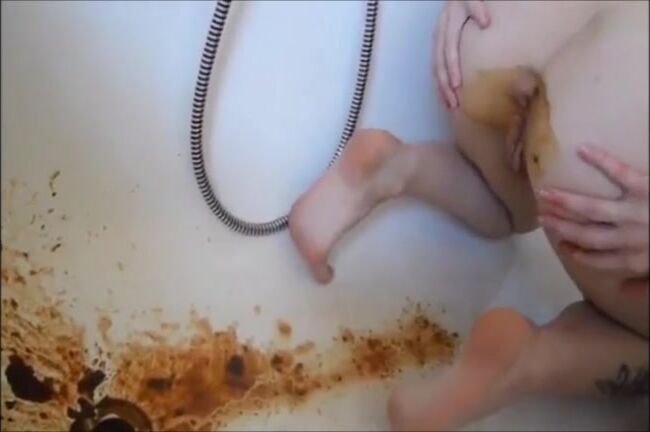 Girl is fingering asshole while shitting heavily