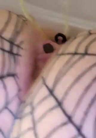 Girl lays on her side and takes a big shit on the bed