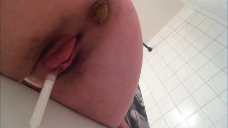 Girl piss and shit closeup in the bathtub