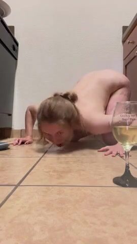 Girl squats and takes a huge shit in a plate on kitchen floor