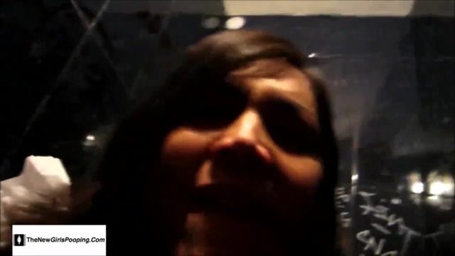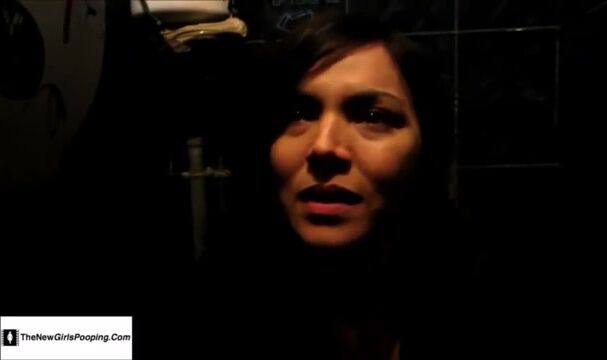 Girl in school uniform takes a massive shit while sitting on a toilet