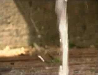 Girl with unshaved pussy is peeing in a public place. She's peeing a lot on neighbours front porch.