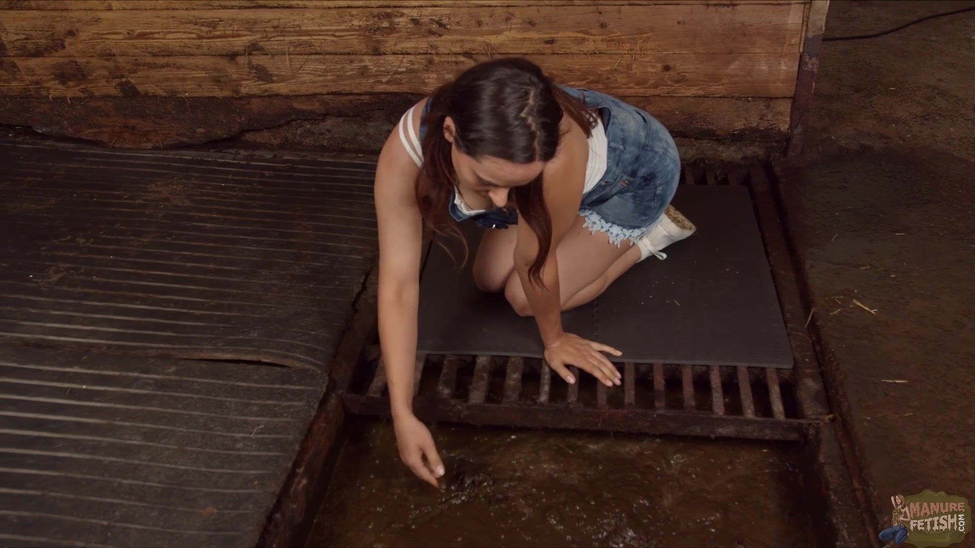 Girls playing and masturbating in cowshit