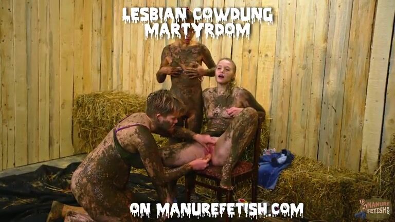Girls Playing and masturbating in messy Cowshit