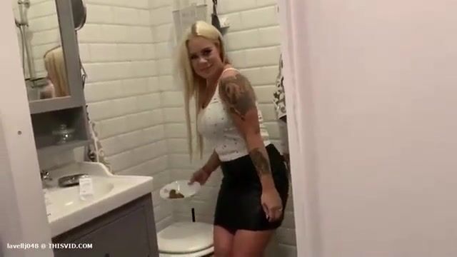 Gorgeous blonde milf poops on the table