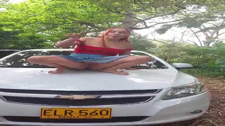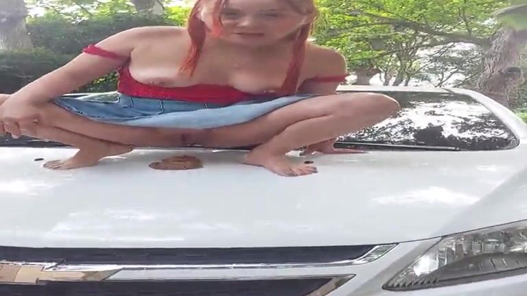 Gorgeous girl shitting on the car