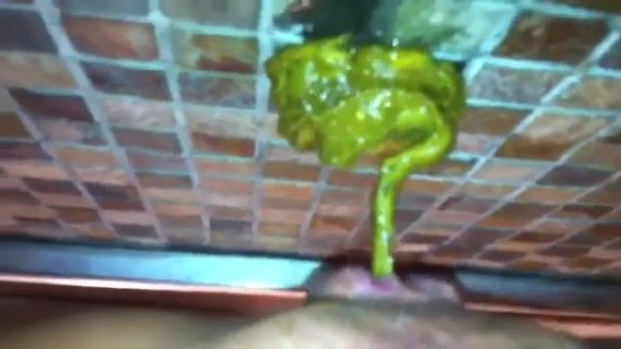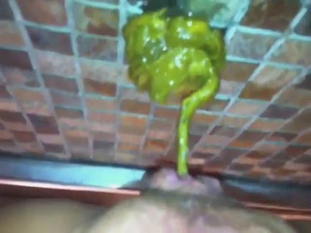 Mature cougar dropped a big pile of green shit on the floor. We can see a white sticky thing that leaks from her pussy…awesome.
