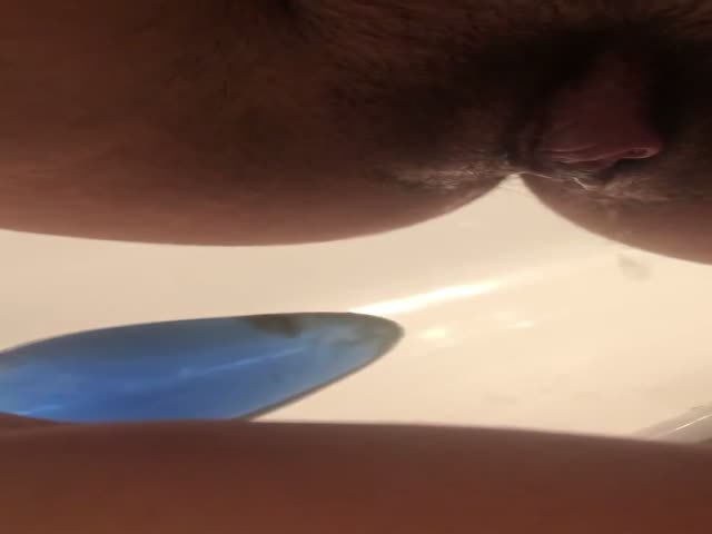 Hairy babe pooping a lot in close up. Using a dildo to penetrate her tight pussy.