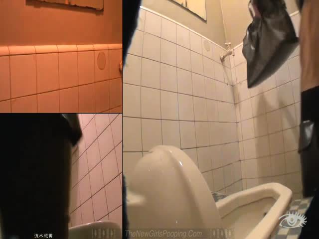 Hairy babe spreads her butt cheeks wide opened so she can easily poop on bathroom floor.