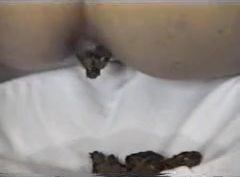 Hairy brunette girl is pooping in the toilet. This is actually a vintage video.