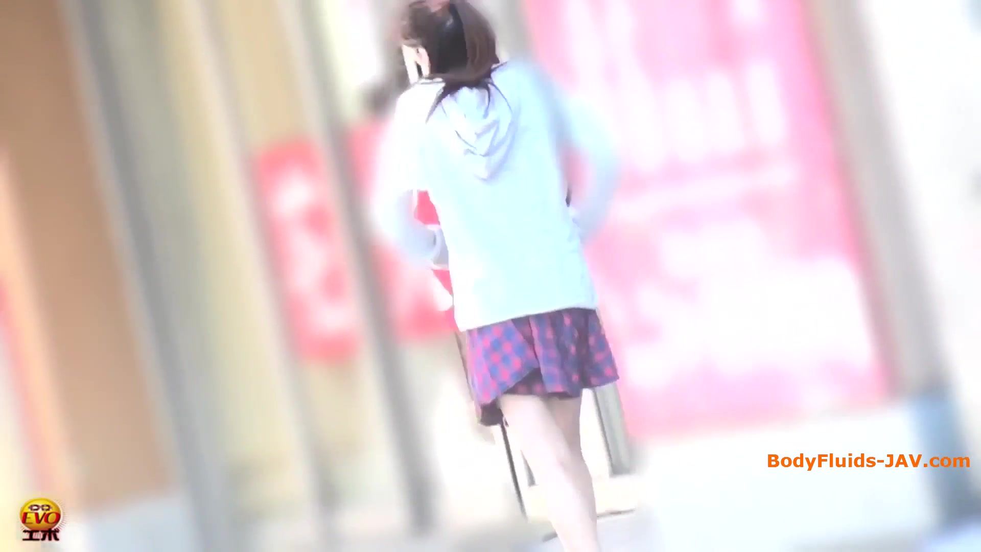 Japanese teen with a hairy pussy and ass did a real mess in a public toilet.