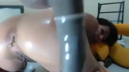Brunette latina rides a big dildo hard. She shits on top of it by mistake and her webcam viewers are shocked.