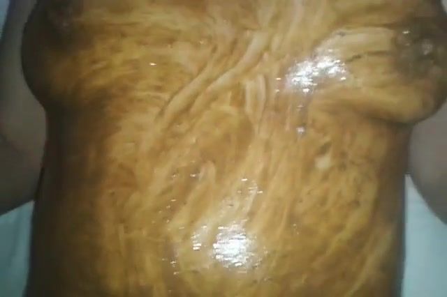 Hairy milf sits naked on her back while her boyfriend is smearing shit on her naked body. He starts fucking her hard in missionary position.