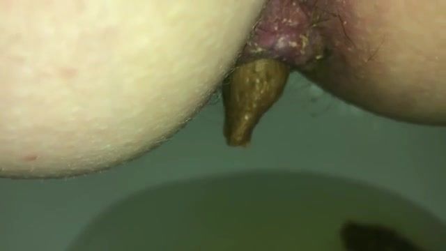 Hairy milf is pushing a big turd in toilet. She records everything in close up.