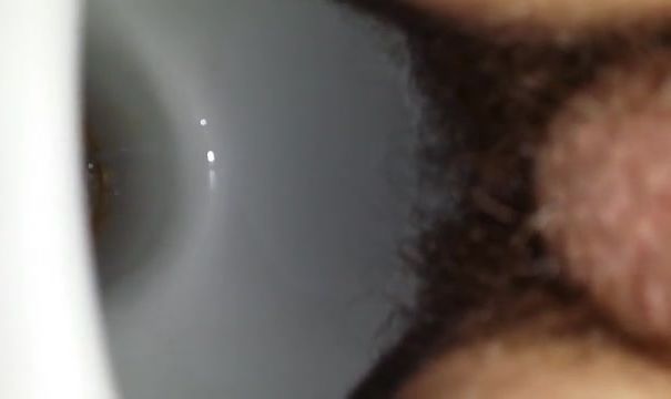 Hairy wife pooping in toilet while she sits naked. Her husband records her pussy and ass in close up.