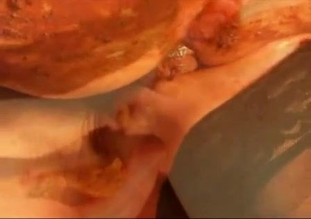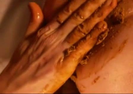 Sexy girlfriend is stroking her boyfriends crap while smearing shit on it. He came on his belly after a while.