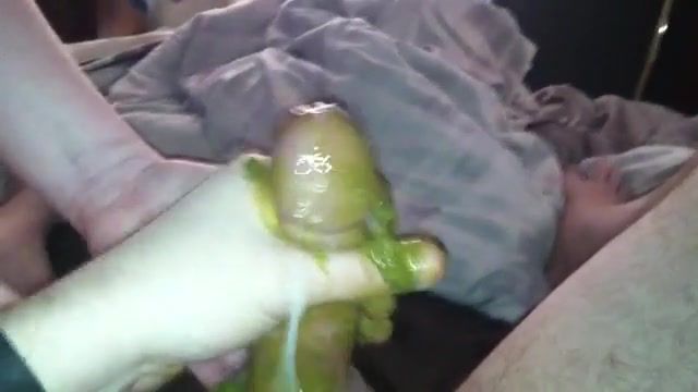 Handjob with green shit