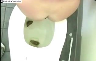 Happy brown haired teen is pooping in the toilet just to have some fun.