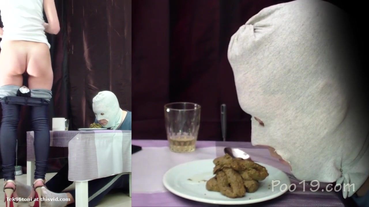 Petite teen wants her boyfriend to eat poop from a white plate.