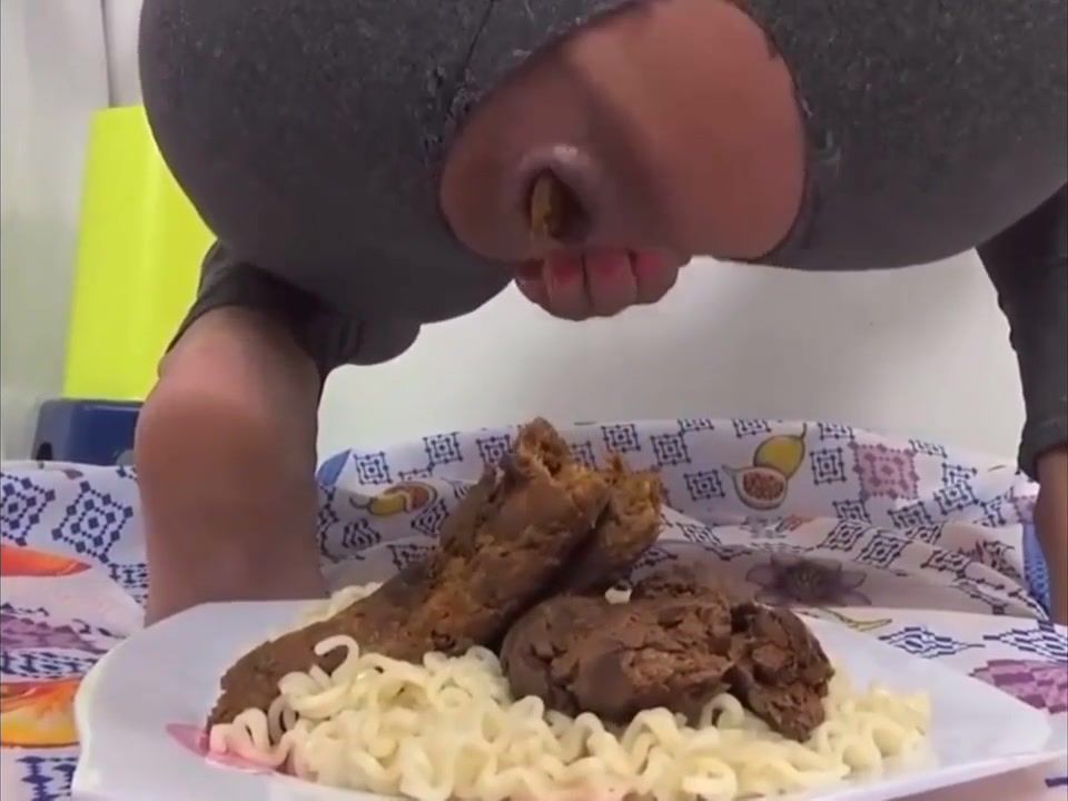 Beautiful milf gets naked slowly and she sits on her knees while pooping on boiled rice.