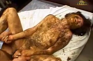 Brunette Asian girl is fucked hard in the pussy while she smears fresh shit on her body. We notice that they are in a hotel room…haha.