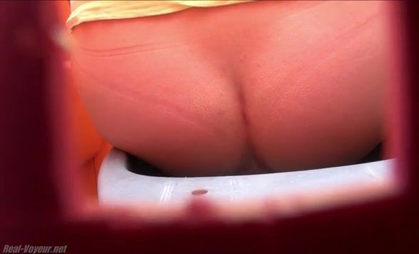 Who thought that we can see a smoking hot girl that's pooping in a public bathroom because of a hidden camera that was installed there?
