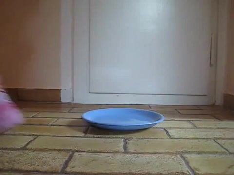 Horny brunette holding her wet pussy while she's pooping on a blue plate. Sexy girl shitting on bathroom floor.