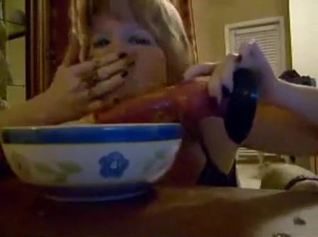 Blonde horny housewife is playing with her fresh crap. She's smearing poop on her hands and face.