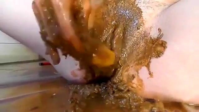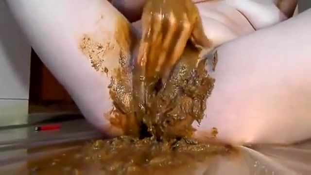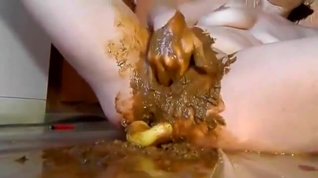 Hot babe smearing poop on her pussy while she's fisting it hard. She starts masturbating until reaching climax.