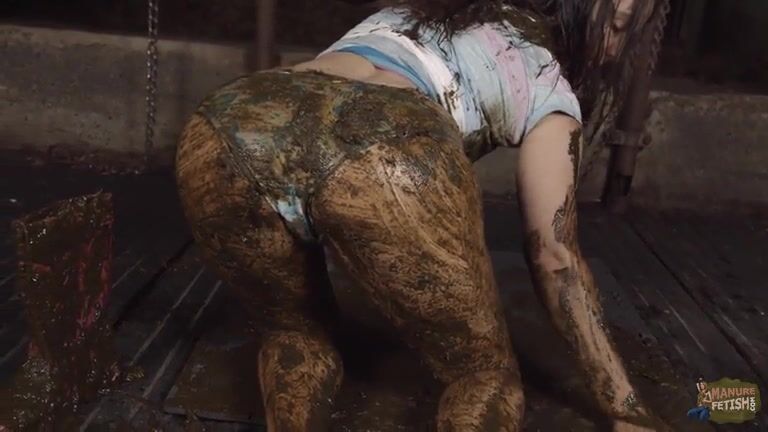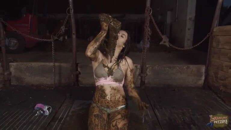 Hot babe masturbates in cowshit