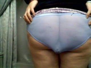 Sexy teen moving her ass around while pooping a big turd in her blue lace panties.