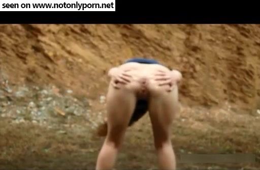 Hot brunette is wiping her dirty butthole with her purple panties.