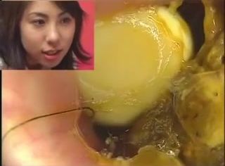 Hot brunette Japanese babe is peeing and pooping into a glass bowl. Her best friends are laughing and having fun.
