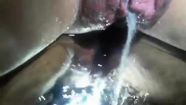 Hot MILf sits naked on a mirror table as she's peeing with pressure. She's teasing us with her fat pussy.