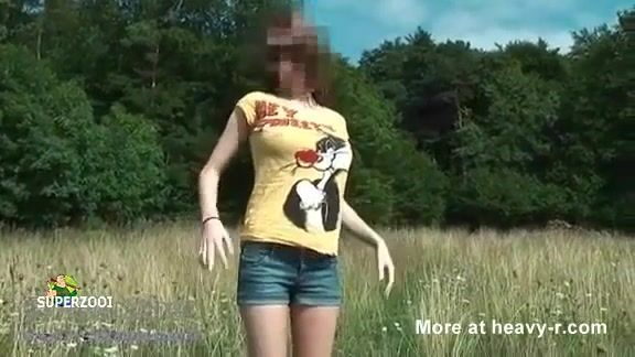 Beautiful milf smears brown shit on her natural tits in a public place.