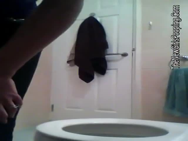 Hot wife gets naked in front of the camera so she can easily poop over toilet.