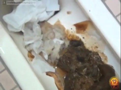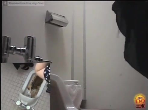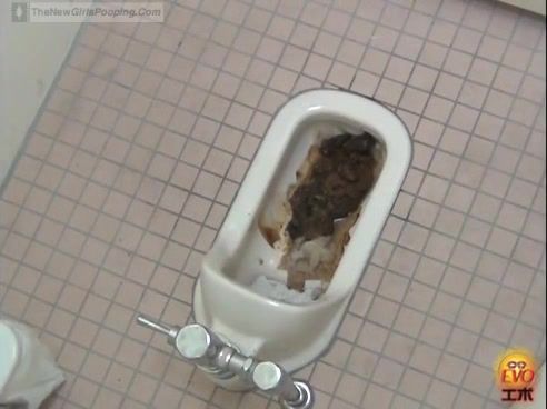 Brunette Japanese hottie dropped a huge pile of fresh turds in a public bathroom.
