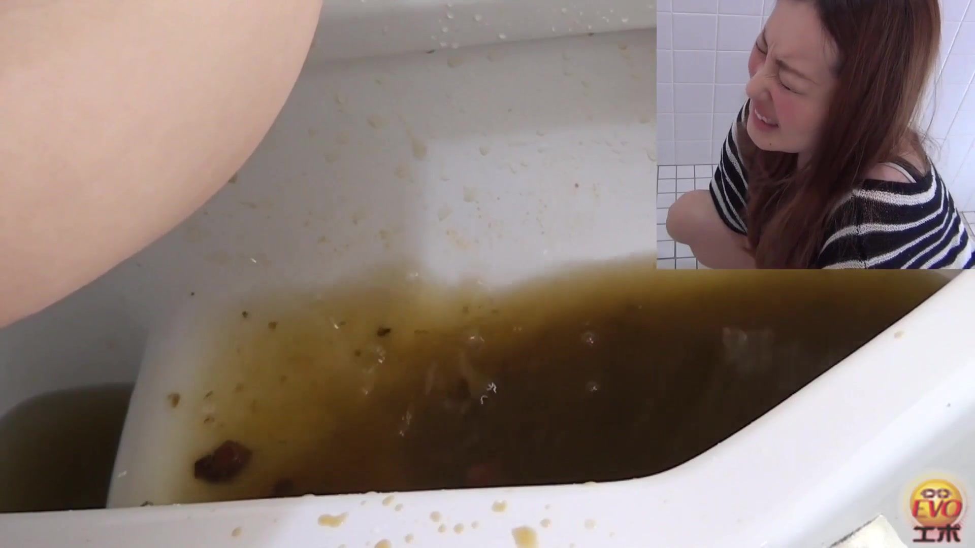 Japanese beauty dropped a huge pile of shit in a public bathroom.