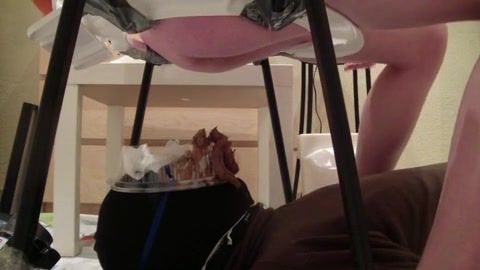 Middle aged guy is forced by his young mistress to sit on the floor while she's pooping into his opened mouth. That's something intense…