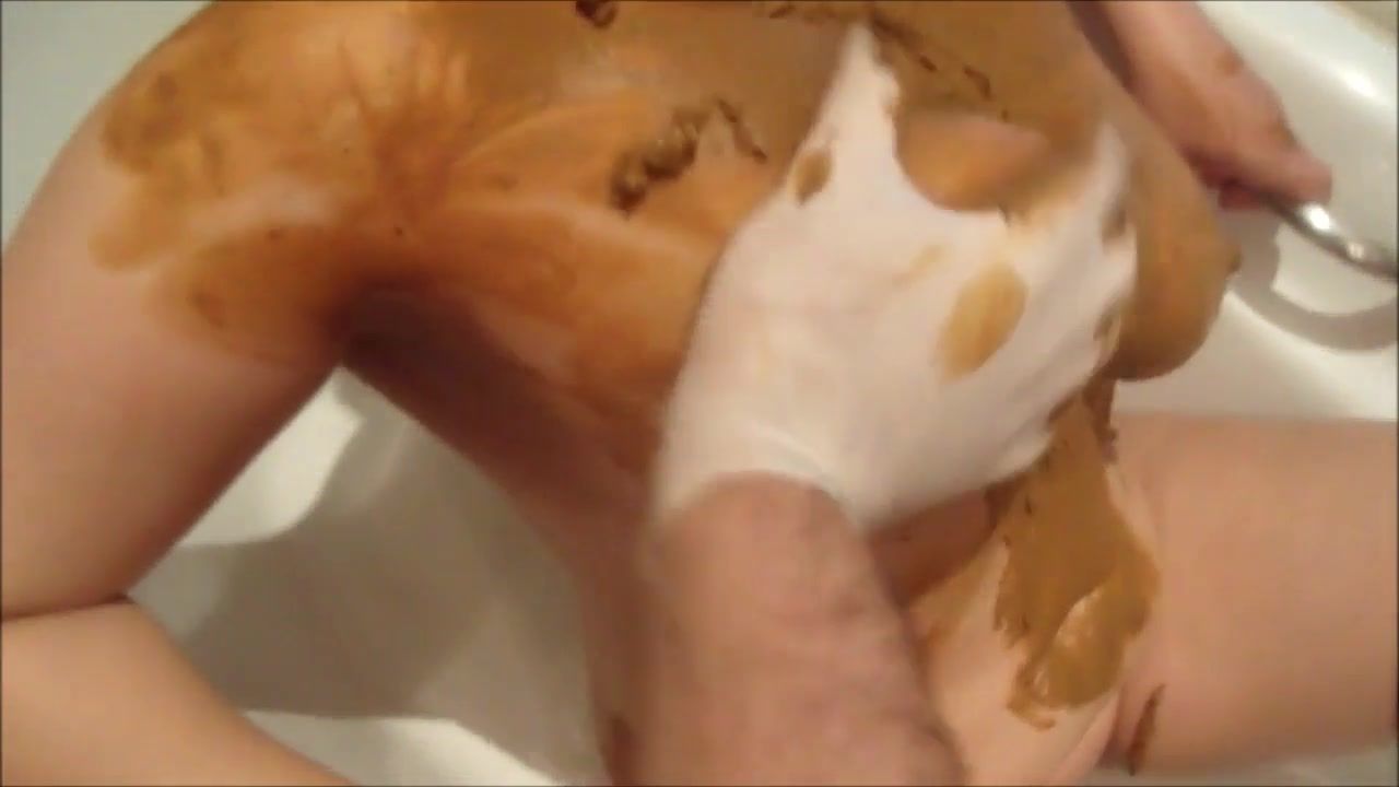 Husband forced his slutty wife to smear shit on her entire face. She did it in the bathtub.