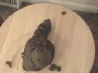 Sexy latina girl dropped an incredible big turd on a wooden table while slowly moving her ass around teasing.