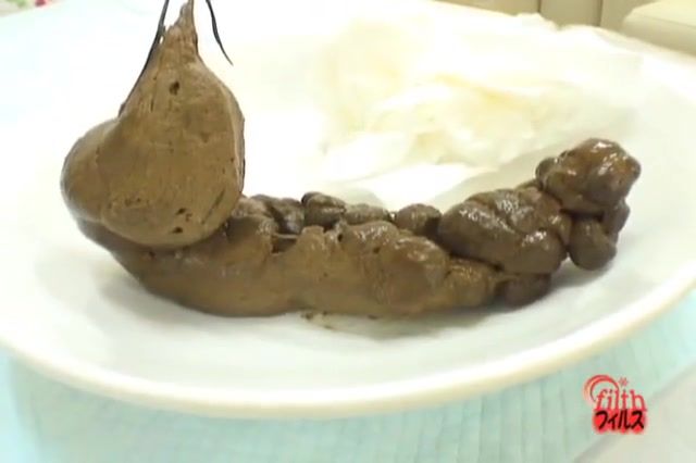 Japanese brown haired teen dropped a big turd on a white plate. She wants to examine her own shit after that.