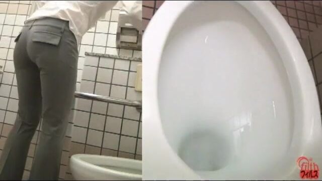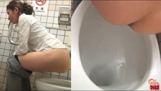 Japanese business lady poops in toilet