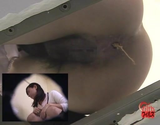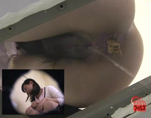 Brunette Japanese girl went to take a shit in a public bathroom. She's peeing and pooping in the same time.